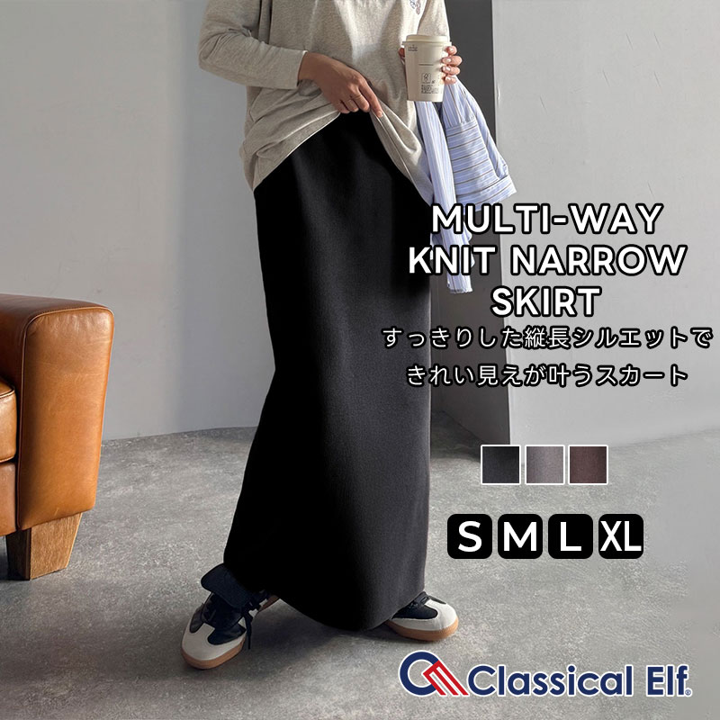 【ブラックフライデー 2025 】早い者勝ち72H限定 20%OFF クーポン 【 クラシカルエルフ classical elf 】 スカート ロング 秋冬 レディース ボトムス ピンタック スリット 位置 自由自在 マルチ WAY ニット ナロースカート ロング丈 大きいサイズ 秋 冬 2025aw ce1050321