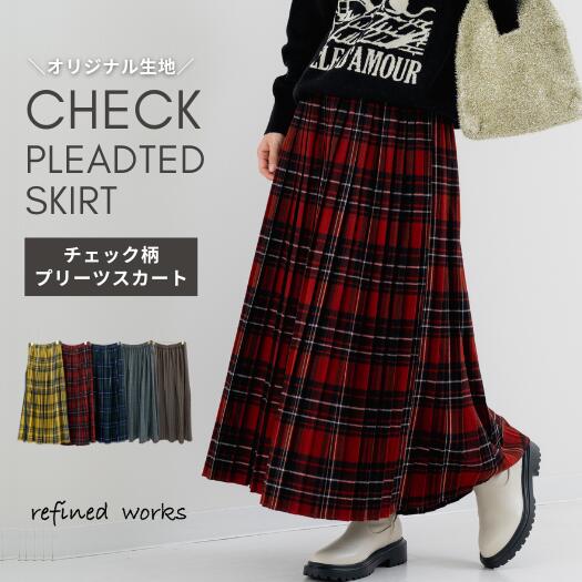 \30日まで!クーポンで最大半額!/【2025AW新商品】起毛チェックプリーツスカート refinedworks リファインド リファインドワークス チェック柄 スカート ロングスカート チェックスカート 秋 冬 赤 黄色 レッド イエロー 黒 ブラック プリーツスカート