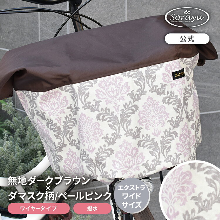 エクストラワイドサイズ:無地ダークブラウン×ダマスク柄バスケットカバー/ペールピンク 前かごカバー 撥水 防水 自転車カバー 自転車前かごカバー 前カゴカバー 自転車 カバー 前| 自転車前カゴカバー