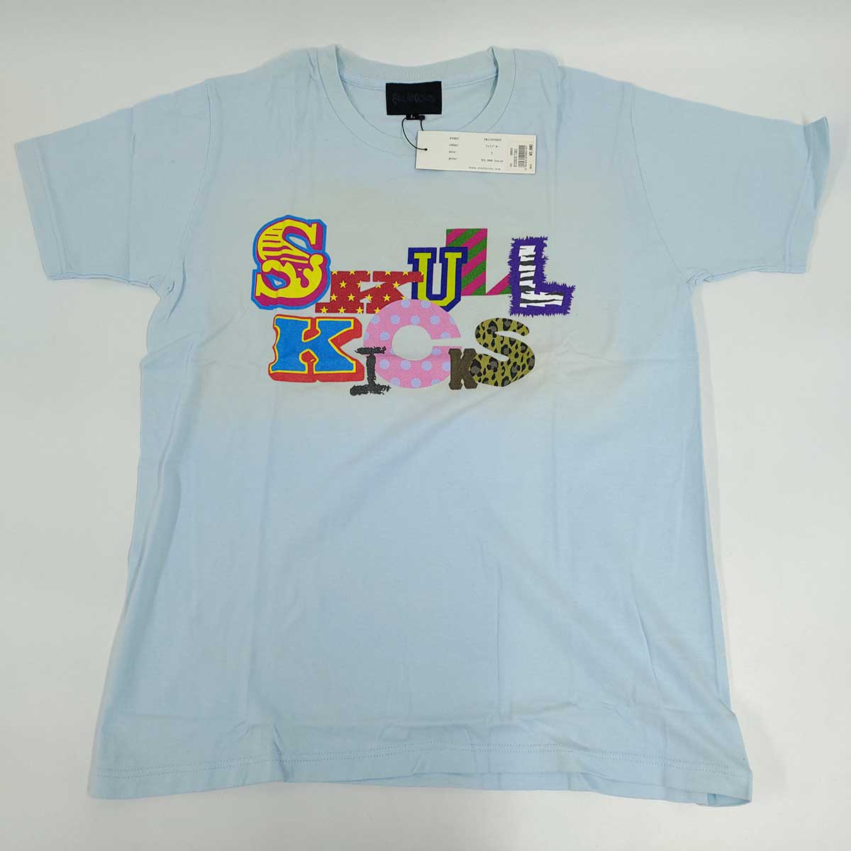 【中古】SKULLKICKS SKULL COLOFUL LOGO TEE 半袖 Tシャツ L ライトブルー SK12SS003 メンズ サッカー フットサルウェア