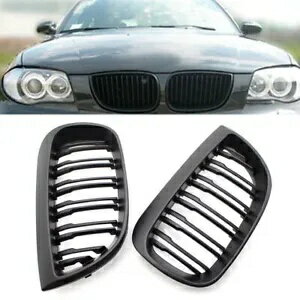 マットブラック ダブル スラット フロント グリル キドニー グリル BMW E87 1 シリーズ 2004-2007 に適合 Matte Black Double Slat Front Grill Kidney Grille Fit BMW E87 1-Series 2004-2007