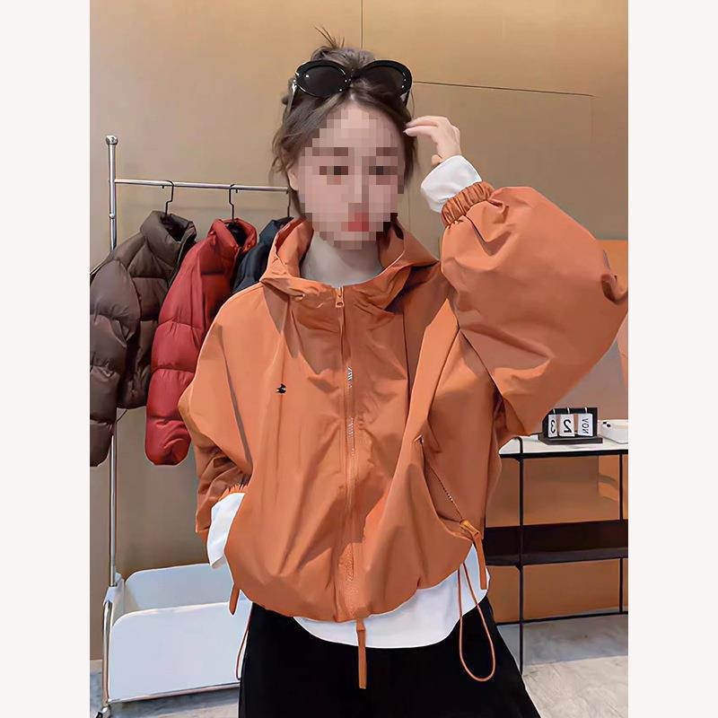 ジャケット レディース ゆったり フード付き パーカー ブルゾン ジャンパー スポーティー カジュアル 南瓜色 ブラック ワインレッド オフホワイト M L XL 2XL