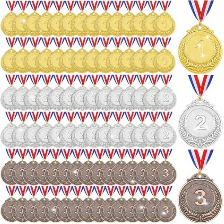 90 個の金、銀、銅の賞メダル、ネックストラップ付き金属製受賞者賞メダル...