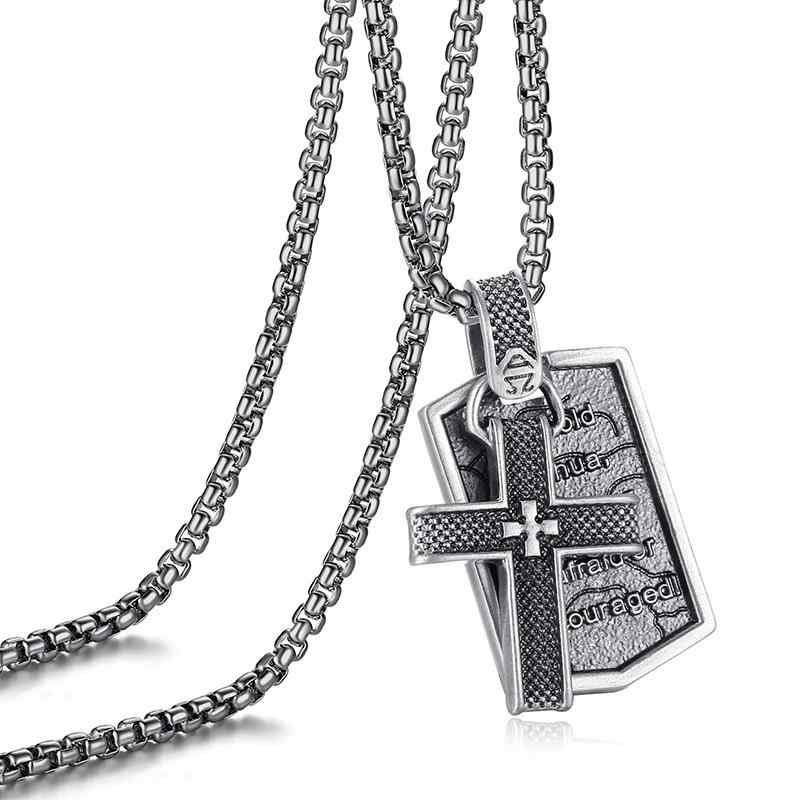 ネックレス メンズ ステンレス ヒップホップ レトロ 十字架 クロス ペンダント 経文 方牌 プレート ブラック アレルギー対応 個性派 ギフト プレゼント