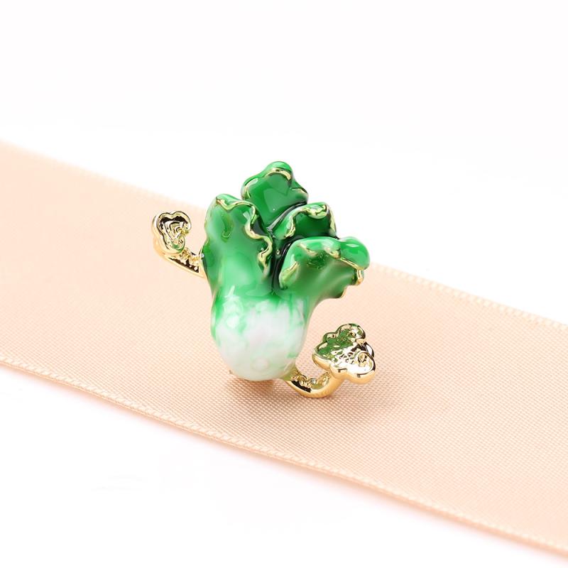ブローチ 男女兼用 新中国風 エナメル加工 如意モチーフ 財運 白菜(百財)モチーフ ピンバッジ ゴールド グリーン系 花デザイン おしゃれ スーツ ジャケット アクセサリー 普段使い ビジネス フォーマル 贈り物 銅製