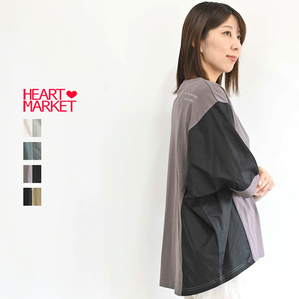 ≪SALE 40%OFF≫ドッキングドルマンチュニックレディース トップス チュニック ドルマン 異素材 カットソー 布帛 ナチュラル ダークグリーン チャコール ブラック 綿/st/sn