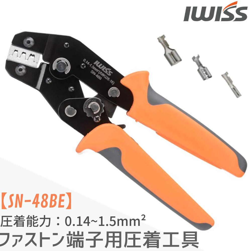 [12/3〜10%OFF] IWISS アイウィス ファストン端子 オープンバレル ファストン 端子 ターミナル 圧着ペンチ 圧着工具 ミニ圧着工具 同時圧着ペンチ 工具 ラチェット EDMカット品 0.14-1.5mm2 中型端子 ミニ圧着ペンチ SN-48BE