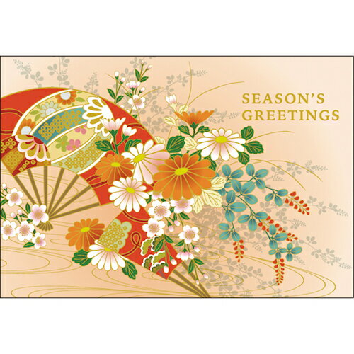 クリスマスカード 和風フォーマルカード 扇と花 SN-107 グリーティングライフ 二つ折り グリーティングカード 手紙 季節 大人 シンプル 海外向け おしゃれ 世界の医療団 寄付 募金