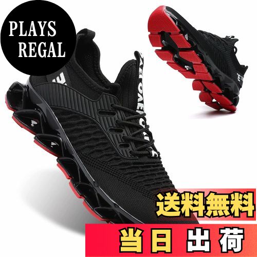【送料無料】[Mevlzz] スニーカー メンズシューズ通気性ランニング靴男の子運動靴ウォーキングジョギングトレーニングシューズスポーツ靴 色:Aブラック レッド、サイズ:28.5 cm