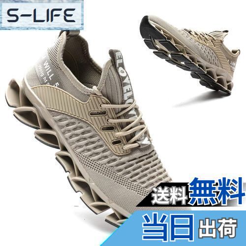 【送料無料】[Mevlzz] スニーカー メンズシューズ通気性ランニング靴男の子運動靴ウォーキングジョギングトレーニングシューズスポーツ靴 色:ベージュ、サイズ:27.0 cm