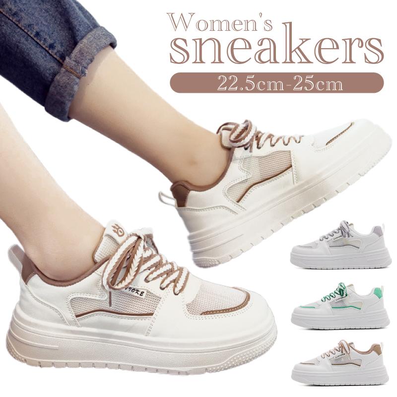 スニーカー レディース 厚底 幅広 可愛い シンプル 女の子 韓国 ファッション 白 緑 ベージュ 厚底 スニーカー レディース 春靴 ランニングシューズ 通気性 カジュアル シューズ 履きやすい ファッション 軽量 ダッドスニーカー レースアップ
