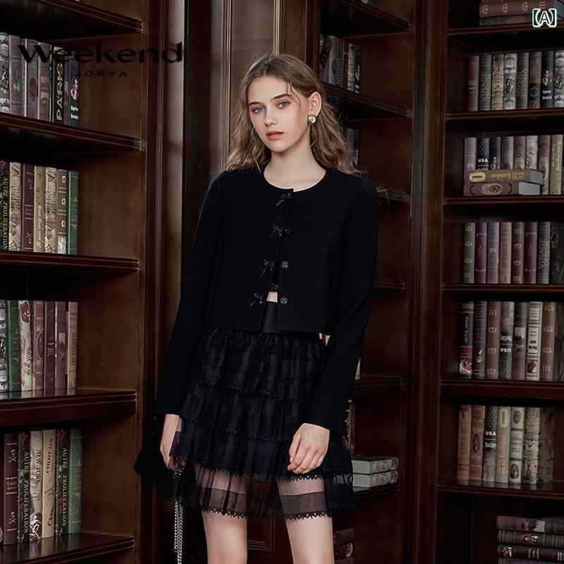 ビジネス スーツ ジャケット Zhuoya Weekend 25 春 フレンチス モール ラウンドネック ライン ストーンボウ ショルダー スーツ ショート ジャケット R 200609 A