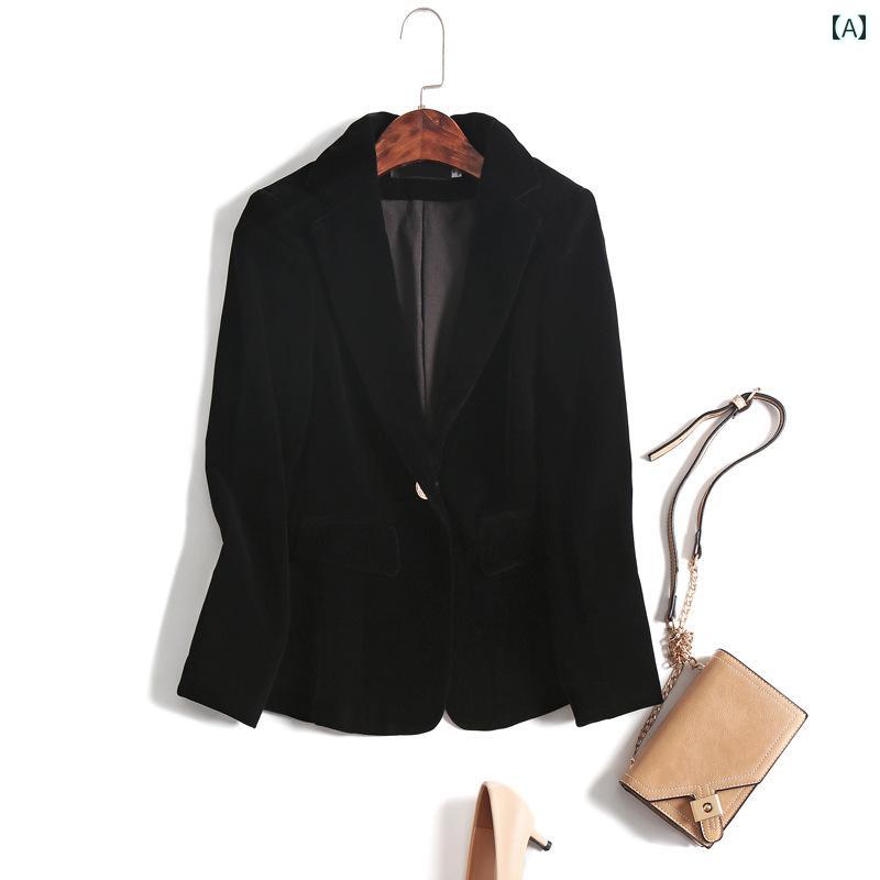 シューズ スリッパ カジュアル スリム ゴールド ベルベット 小さい スーツ レディース 秋 ファッション ワン ボタン カジュアル プロ ショート ジャケット