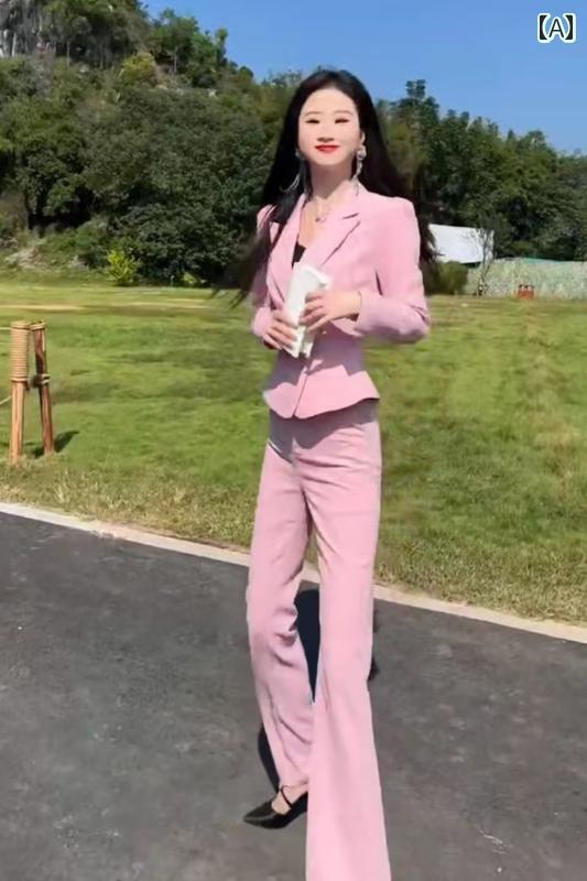 レディース カジュアル ウェア 2025 春夏 ネット 女性用 ファッション スーツ の カラー ピンクの 年齢を 減らす ジャケット スリム フレアパンツ