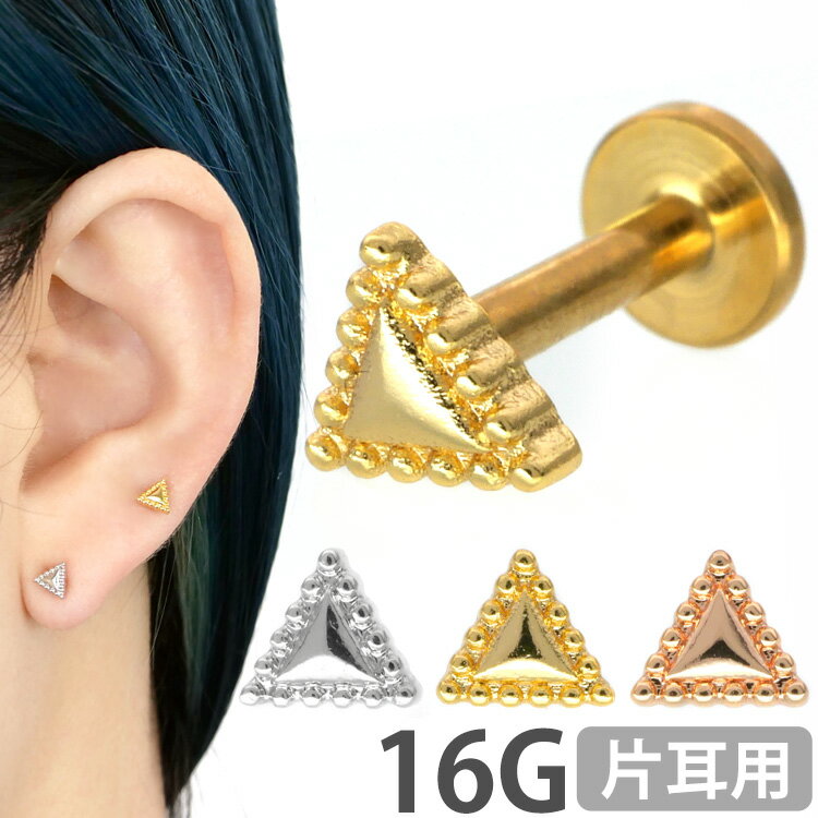 【つけっぱなしピアス 】 ボディピアス 16G ミル打ちトライアングルラブレット Soeur de Nana 軟骨ピアス【片耳用】【30日間お試し期間あり/返品交換保証】