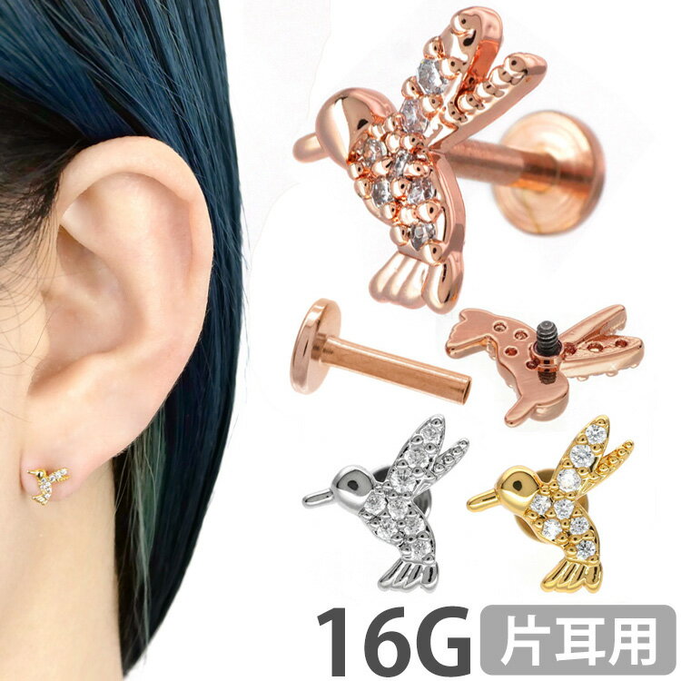 【つけっぱなしピアス 】 ボディピアス 16G ハミングバードラブレット Soeur de Nana ボディーピアス 軟骨ピアス【片耳用】【30日間お試し期間あり/返品交換保証】