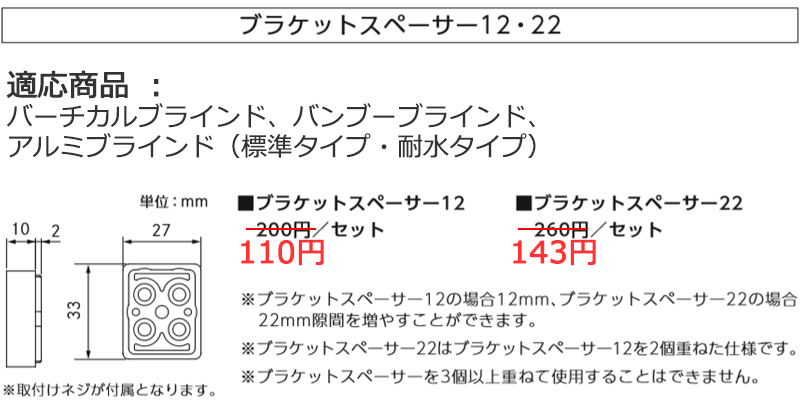 ポポラ2 バーチカルブラインド バンブブラインド アルミブラインド(標準・耐水) オプション ブラケットスペンサー22/セット