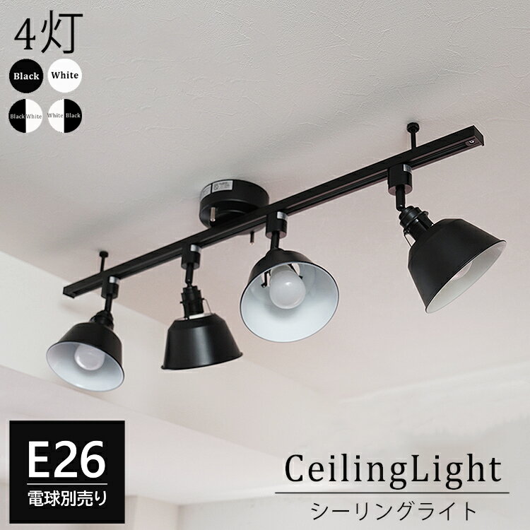 【RAIL-spotlight】シーリングライト ダクトレール用 スポットライト 4灯 E26 照明器具 天井照明 レールライト ライティングレール led対応 6畳 省エネ 節電 白 黒 ホワイト ブラック リビング ダイニング キッチン 店舗 おしゃれ シンプル