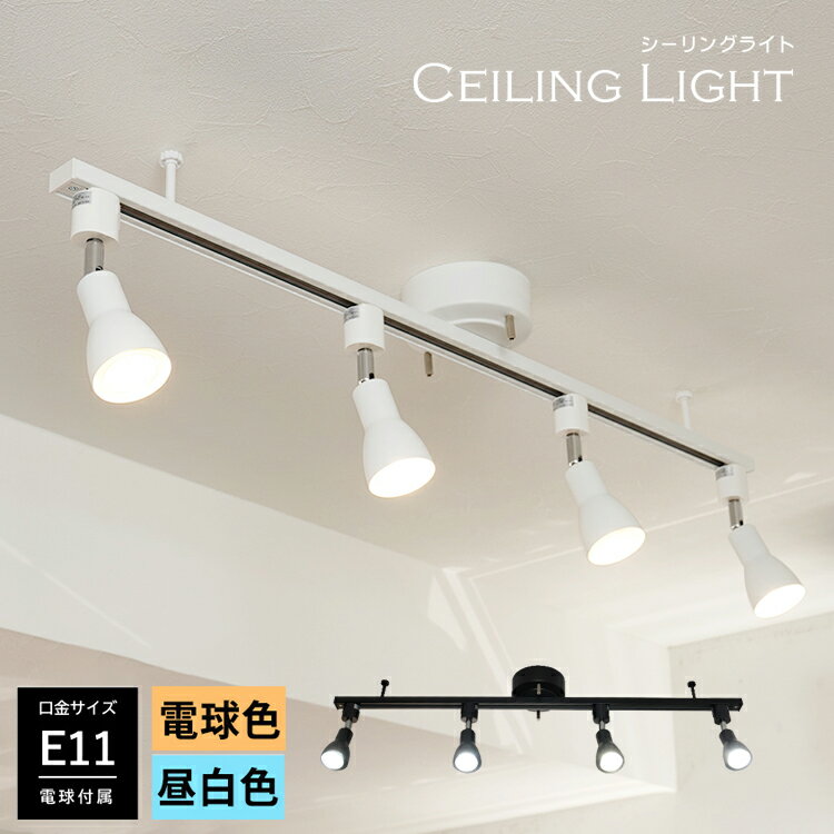 【RAIL-spotlight LED電球付】シーリングライト ダクトレール用 スポットライト 4灯 E11 40W相当 400lm 電球色 昼白色 照明器具 天井照明 レールプラグ シーリングプラグ 工事不要 白 黒 ホワイト ブラック リビング ダイニング キッチン ベッドルーム 寝室 店舗 子供部屋