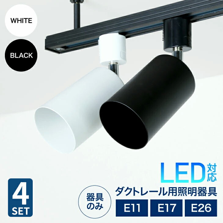 スポットライト器具 ダクトレール用 4個セット E26 E17 E11 LED対応 照明 ダクトレール ライト おしゃれ レールライト ライティングレール スポットライト シーリング led スポットシンプル spotlight 寝室 食卓 天井照明 店舗 展示用 ※器具のみ