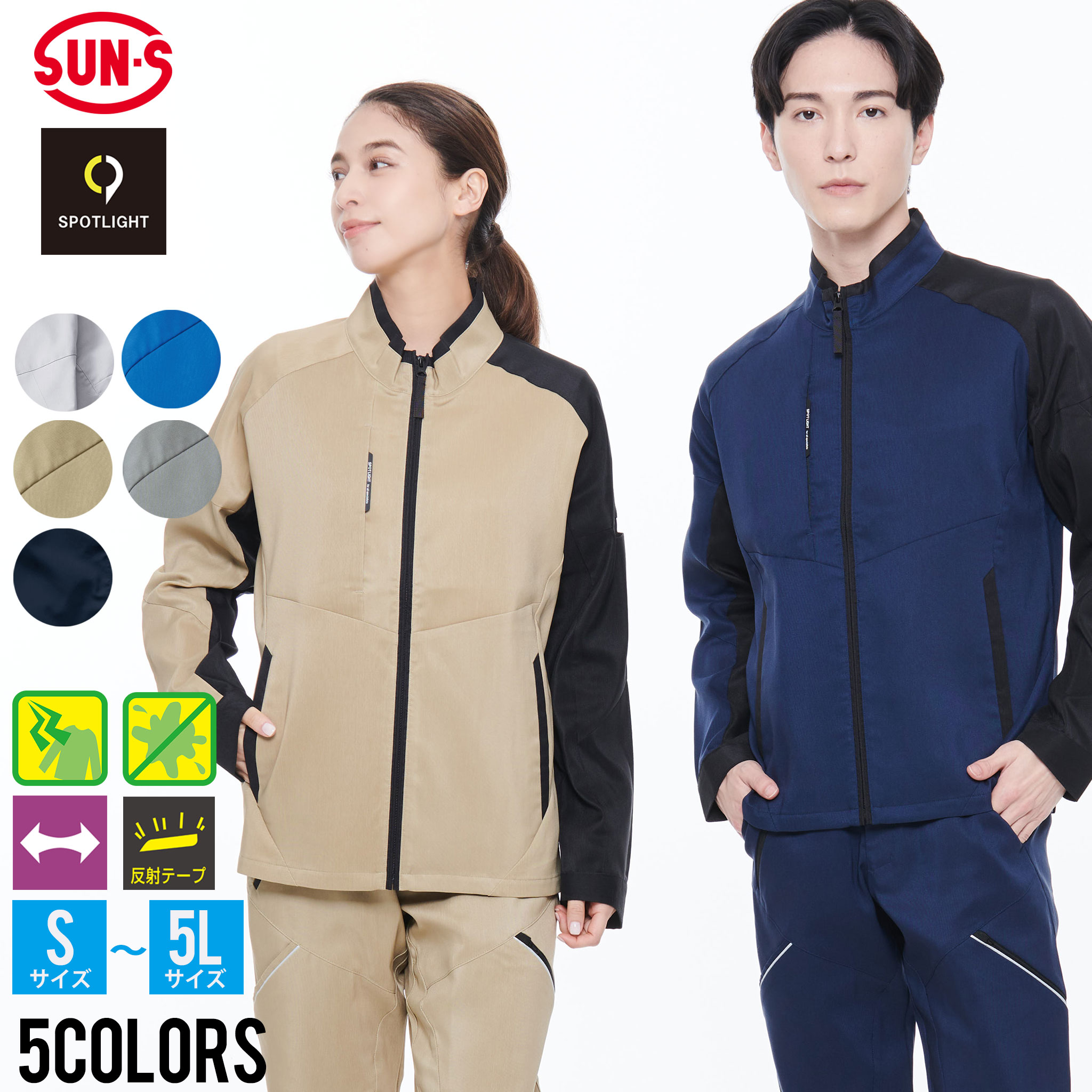 SPOTLIGHT 長袖ブルゾン SPT22501 作業着 ジャケット 軽量 ストレッチ 通年 メンズ レディース SUNS