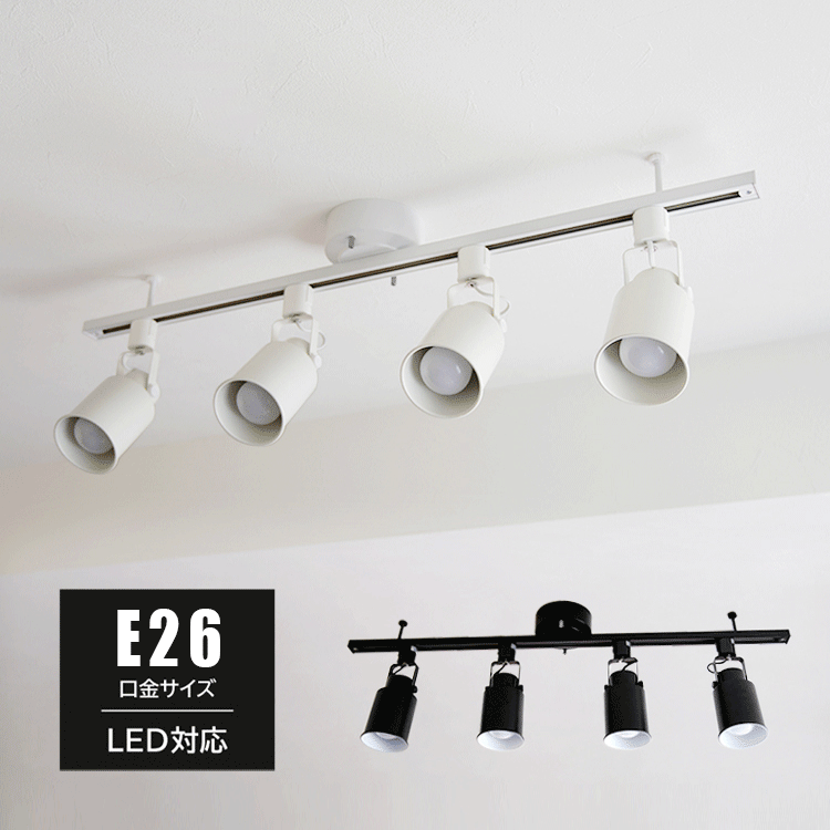 【RAIL-spotlight】シーリングライト ダクトレール用 スポットライト 4灯 E26 照明器具 天井照明 レールライト ライティングレール led対応 6畳 省エネ 節電 白 黒 ホワイト ブラック リビング ダイニング キッチン 店舗 おしゃれ シンプル