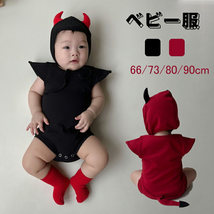 【2点セット】ハロウィン 衣装 ベビー ロンパース コスプレ 小悪魔 着ぐるみ 赤ちゃん 仮装 デビル 子供 女の子 男の子 帽子付き ハロウィン衣装 可愛い 新生児 なりきり 変身 パーティー 誕生日 クリスマス イベント 出産祝い 記念撮影 プレゼント