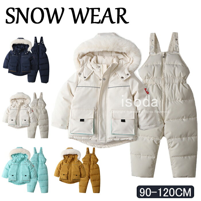 スキーウェア スノーウエア キッズ 上下セット ベビー ジャンプスーツ ダウンアウター カバーオール つなぎ オールインワン サロペット スノーボード ジュニア 男の子 女の子 冬 無地 キッズ 雪遊び スキー 防風 撥水 暖かい 中綿 裏起毛 ジャケット パンツ