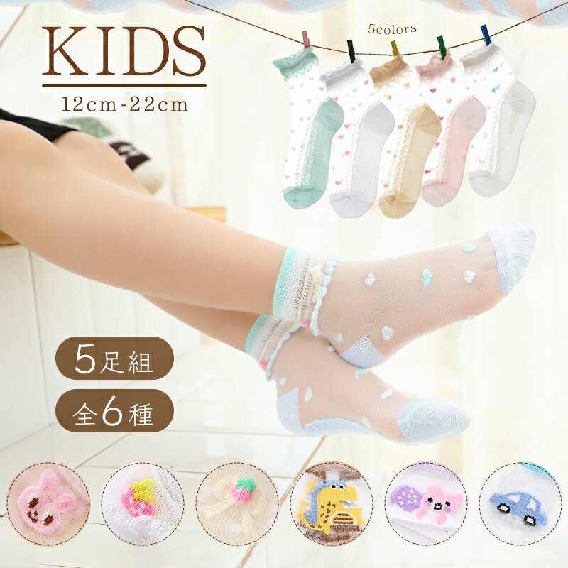 5足組 靴下 キッズ 女の子 男の子 くるぶし レース フリル おしゃれ キャラクター かわいいうさぎ いちご 恐竜 熊 リボン ストッキング 子供 女の子 男の子 ジュニア ベビー ソックス クルーソックス