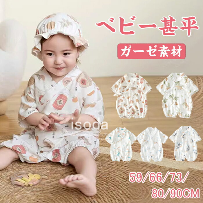 ベビー ロンパース ベビー 甚平 男の子 女の子 赤ちゃん 新生児 ガーゼ素材 前開き 肌着 ベビー服 浴衣 パジャマ 半袖 春 夏 無地 肌着 綿 コットン ガーゼ かわいい 薄手 出産祝い ギフト 花火 花火大会 お祭り 夏服 59 66 73 80 90