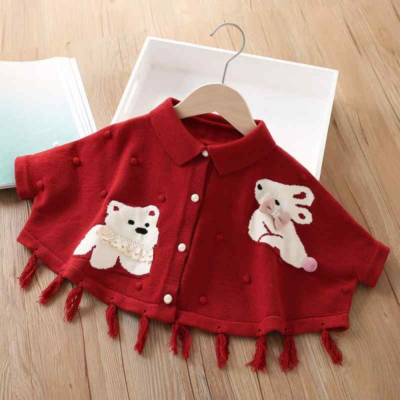 ニットカーディガン 女の子 秋冬 やわらか 長袖 おしゃれ かわいい キャラクター 前開き 襟付き ポンチョ ドット柄 アウター 女児 ベビー キッズ