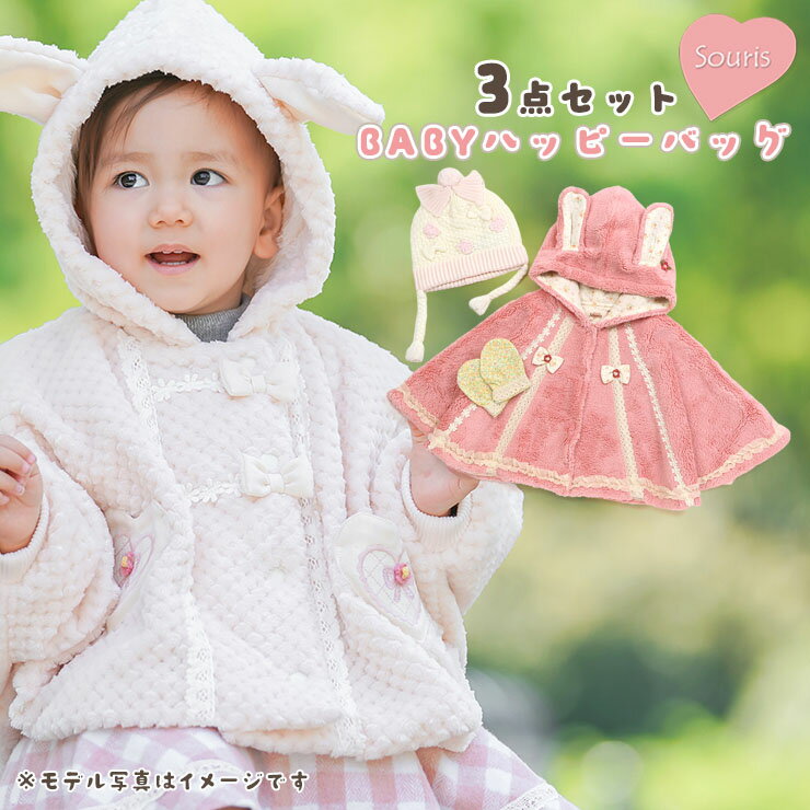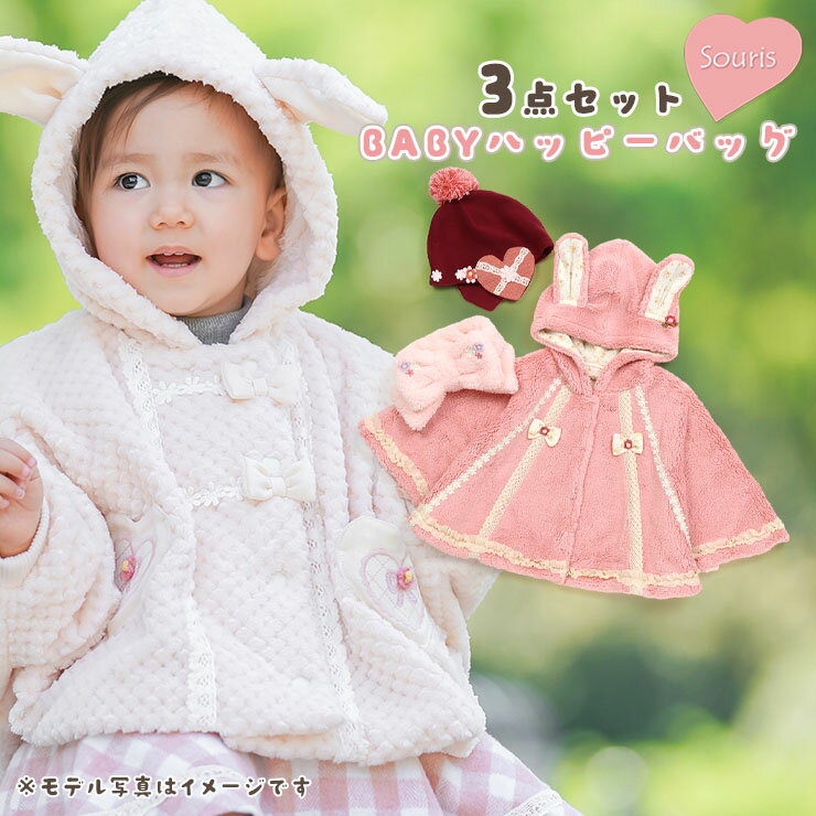 【メーカー価格12100円】Souris ベビーハッピーバッグ3点セット ベビーマント ミトン 帽子 女の子 ベビー 赤ちゃん 秋冬 福袋 ポンチョ アウター 子供服 ベビー服 スーリー srs-baby-002