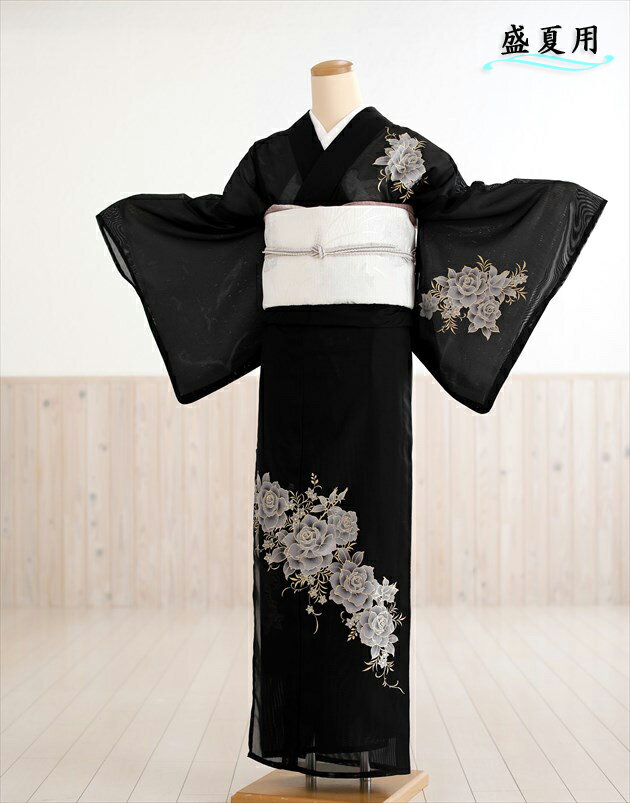 訪問着レンタル 絽 sr5020 「彩の粋」ブランド 黒地に慶びの華 結婚式 訪問着レンタル 夏用 夏着物 訪問着レンタル お宮参り 訪問着レンタル 7月 8月 フルセットレンタル 夏 着物レンタル ママ 母 母親 淡色 人気【fy16REN07】
