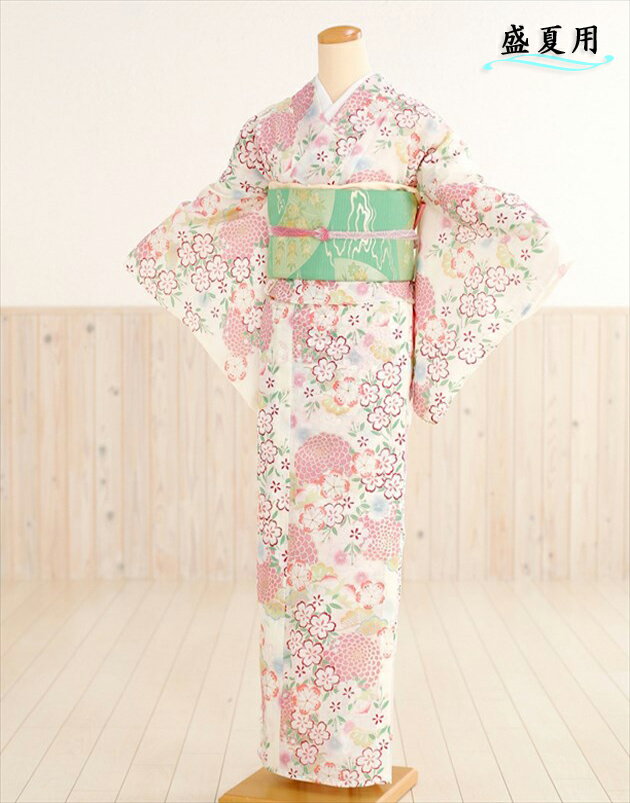 絽 訪問着レンタル sr5007 訪問着レンタル 結婚式 訪問着レンタル 夏用 訪問着レンタル 夏 訪問着レンタル お宮参り 訪問着レンタル 7月 8月 着物レンタル ママ 母 母親 白地にピンク桜椿花【fy16REN07】