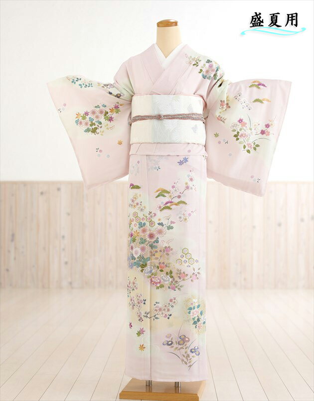 訪問着レンタル 絽 sr5024 結婚式 夏用 夏着物 お宮参り 7月 8月 フルセット 夏 涼しい 着物レンタル ママ 母 母親 淡色 人気 高級訪問着 さわやかなピンクに吉祥慶びの花【レンタル】