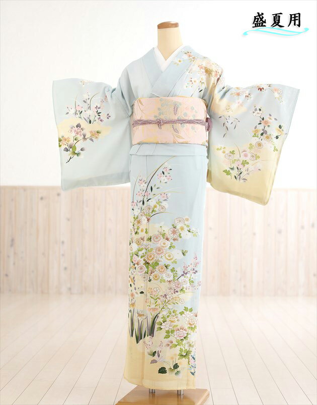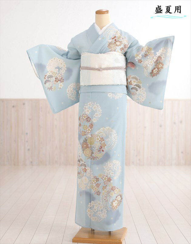 訪問着レンタル 絽 sr5023 結婚式 夏用 夏着物 お宮参り 7月 8月 フルセット 夏 涼しい 着物レンタル ママ 母 母親 淡色 人気 高級訪問着 水色に絢爛慶びの吉祥花【レンタル】