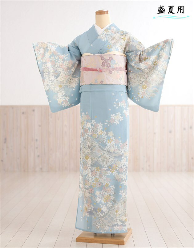 訪問着レンタル 絽 sr5030-2 結婚式 夏用 夏着物 お宮参り 7月 8月 フルセット 夏 涼しい 薄手 着物レンタル ママ 母 母親 淡色 人気 高級訪問着 フォトブックプレゼント 「ジャパンスタイル」ブランド 水色に彩り麗華【レンタル】