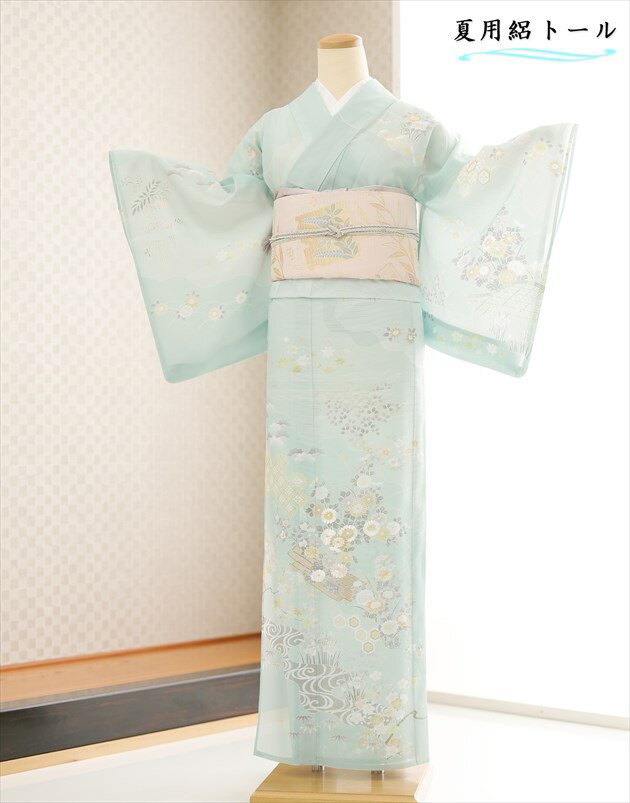 訪問着レンタル 絽 sr5001 訪問着レンタル 結婚式 訪問着レンタル 夏用 訪問着レンタル 夏 訪問着レンタル お宮参り 訪問着レンタル 7月 8月 着物レンタル ママ 母 母親 グリーンに芝草文【fy16REN07】