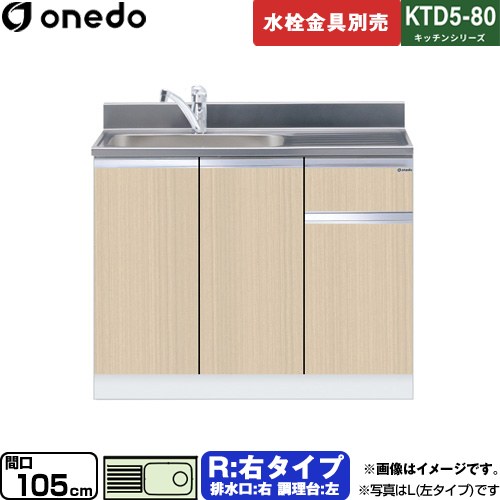 メーカー希望小売価格はメーカーカタログに基づいて掲載しています【キーワード】旧:マイセット onedo /KTD5-80-105DS-R-LG 商品説明シリーズ KTD5-80 キッチンシリーズカラー 木目仕様・特徴 どんな空間にも合わせやすいシンプルなデザイン流し台 右タイプ間口:105cm高さ:80cm奥行:55cm排水口位置:右 調理台位置:左組合せ型流し台トップ出し水栓仕様水栓穴径:φ38mm※水栓金具別売り一槽流し台ワークトップ:SUS304同等レベルの鋼材シンク部:SUS304J1付属品ゴミ収納器、包丁差し、小物入れ、引き出しトレー、フレキシブルホース