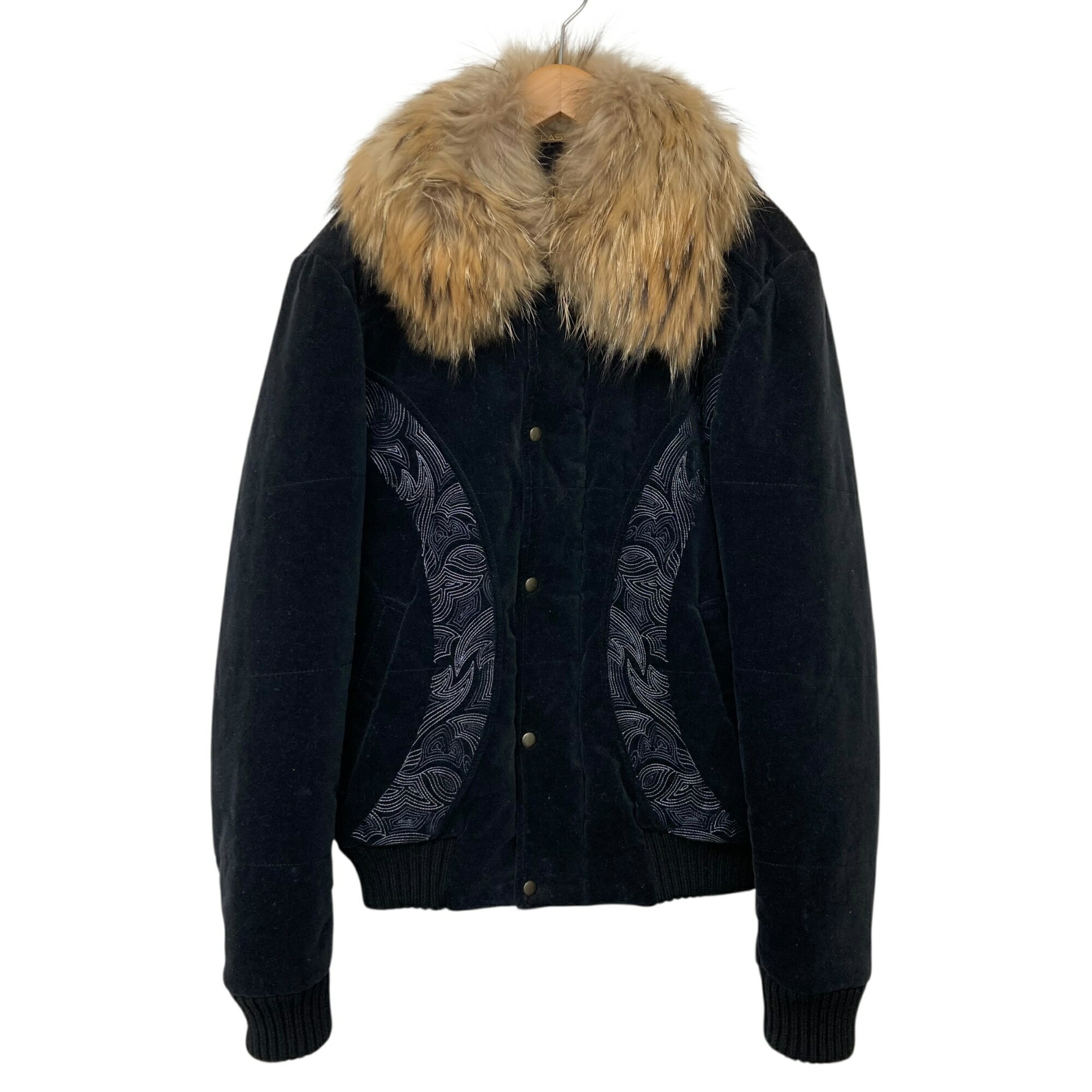 Class Roberto Cavalli/クラス ロベルト カヴァリ/ファー付き中綿ブルゾン/ペイズリー/刺繍/ブラック/レディース/サイズ46/RS0350