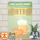 P10倍】 生ビール ポスター インテリア雑貨 ブリキ看板ssav BAR バー お酒 アートパネル 絵画 おしゃれな レトロ風 黄緑色 アメリカン雑貨 20cm 30cm A4 メール便 プレート