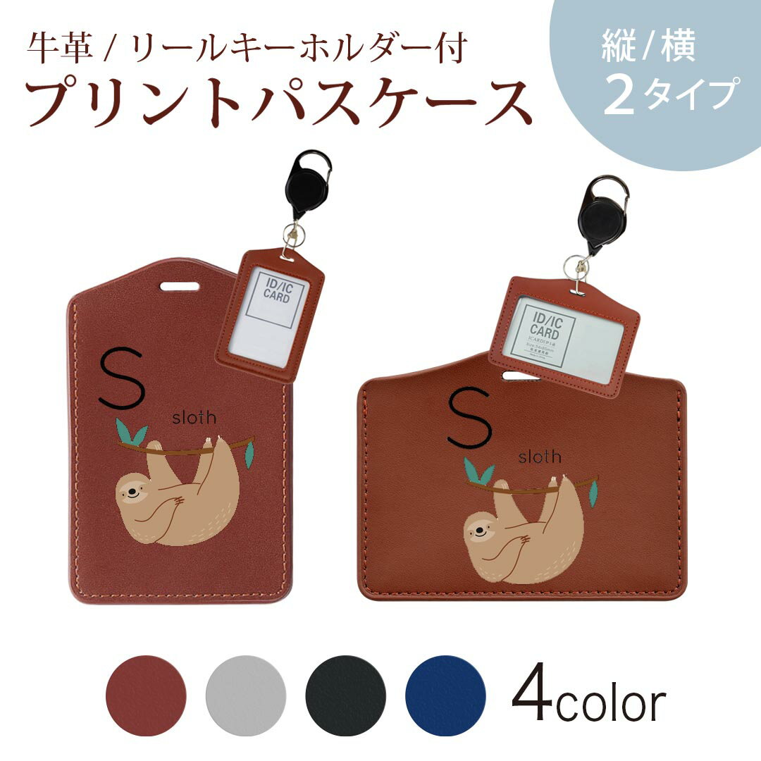 パスケース リールキーホルダー付 定期入れ IC IDカード入れ グレー ブラック ブラウン ネイビー 紛失防止 70cm伸びる 社員証入れ 通学 通勤 passcase 019952 動物 アルファベット S sloth ナマケモノ