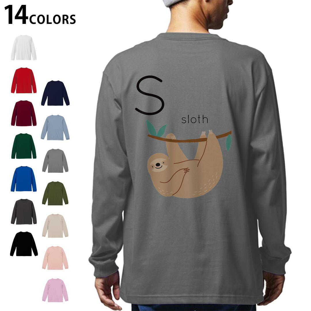 選べる14カラー バックプリント メンズ レディース ユニセックス unisex 長袖 デザイン XS S M L XL 2XL Tシャツ ロング ティーシャツ T shirt 019952 S sloth ナマケモノ