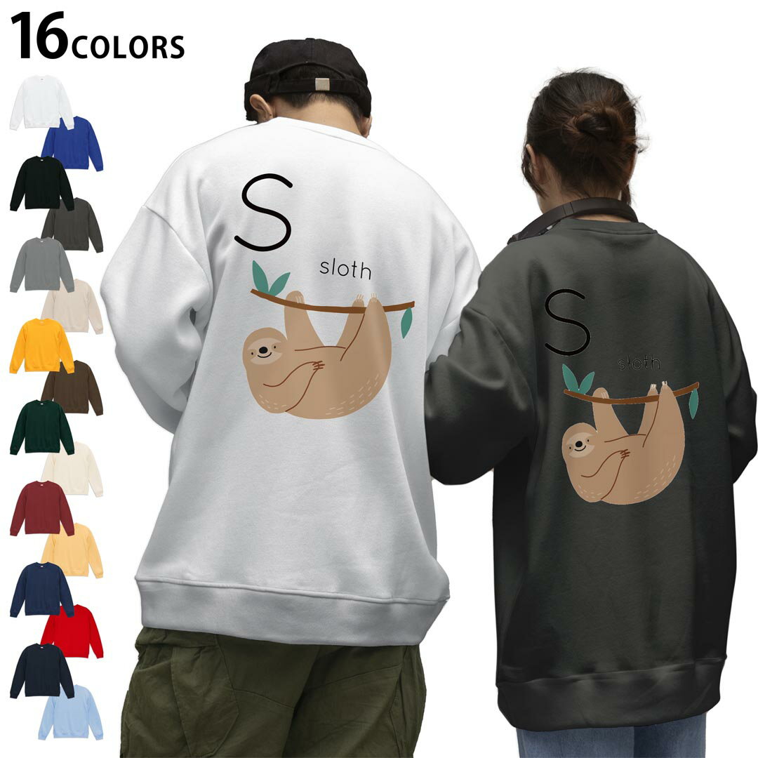 選べる16カラートレーナー メンズ レディース ユニセックス 長袖 デザイン S M L XL 2XL sweatshirt trainer スウェット 019952 S sloth ナマケモノ