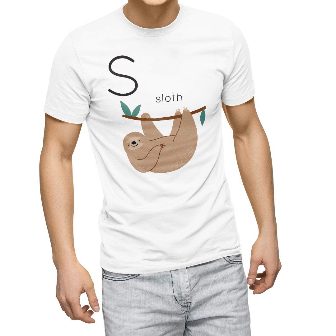 Tシャツ メンズ 半袖 ホワイト グレー デザイン S M L XL 2XL Tシャツ ティーシャツ T shirt 019952 S sloth ナマケモノ