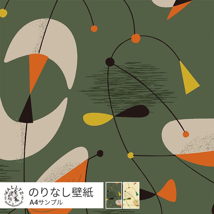 はがせる壁紙 のりなしタイプ 賃貸 おしゃれ クロス WALLTZ ウォルツ サンプル 緑 グリーン イエロー 黄色 ベージュ ジャズ 楽器 音楽 幾何学 Day Starter / jazz クリエイターズ壁紙 壁紙の上から貼れる 簡単 張り替え トイレ キッチン 壁紙屋本舗