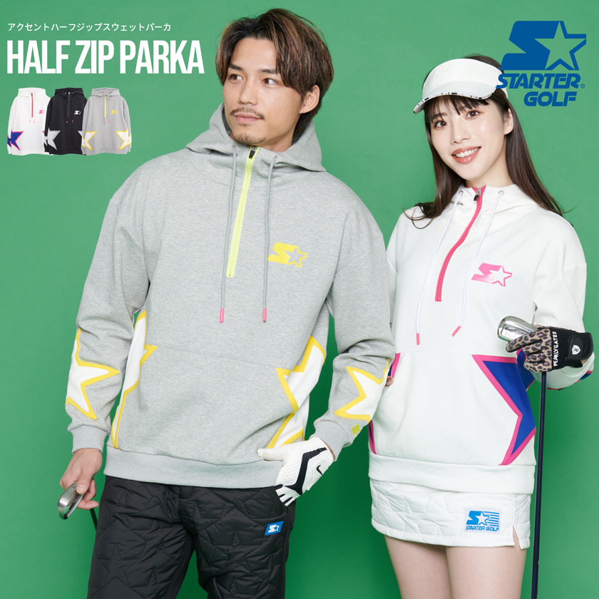 【送料無料】STARTER GOLF スターターゴルフ パーカー ハーフジップ ハーフジップパーカー ジップパーカー スター 星 スウェット スエット フーディー ゴルフウェア ゴルフウエア 防寒 暖かい あったか メンズ レディース 男性 女性 ユニセックス ファッション