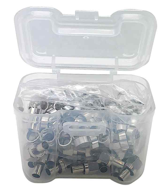 二幸電気工業 4Cケーブル用アンテナ接栓 [専用工具不要・ペンチで楽々ケーブル取り付け] 保管用プラボックス50個入(ベルト装着可)60年以上の歴史をもつ製造メーカーの安心品質使用周波数帯域:3224MHz対応(4K8K) ケーブル特性による適合規格:EITA RC-5223A適用ケーブル:S-4C-FB(内部導体径φ0.8mm)・TVEFCX (内部導体径φ0.8mm)コネクタ接続方式:3/8-32UNEF(ネジ)タイプ:ピン無(ケーブルの中心ピンをそのまま使うタイプ)メッキ:光沢ニッケルメッキケーブル接続リング:アルミ材・角付きタイプ(ペンチで加工可)環境規制:RoHS対応ベルト装着可能式ボックスに50個入(コネクタとリングは別々梱包)ボックスサイズ:65mm(L)・96mm(W)・73mm(H)
