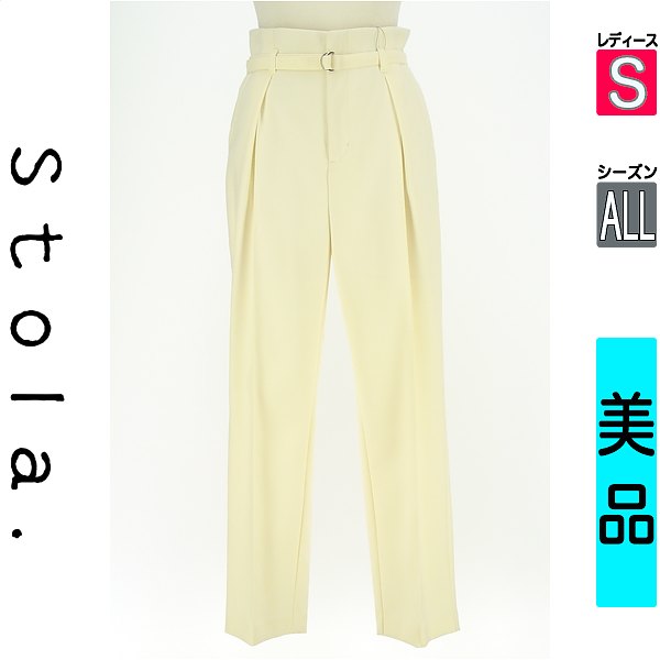 \14周年祭★全品15%OFFクーポン/ ストラ Stola. パンツ レディース オールシーズン アイボリー S ベルト付きタックテーパードパンツ 【中古】【古着】【大幅値下】