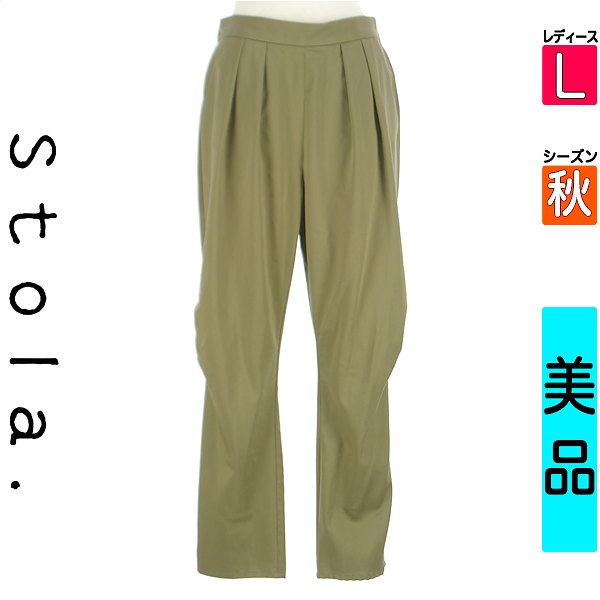 \14周年祭★全品15%OFFクーポン/ ストラ Stola. パンツ レディース 秋 カーキ L サイドタックテーパードサテンパンツ 【中古】【古着】【大幅値下】